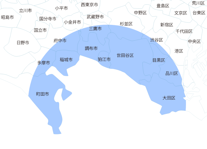 港区、品川区、大田区、渋谷区、町田市、多摩市、三鷹市、府中市