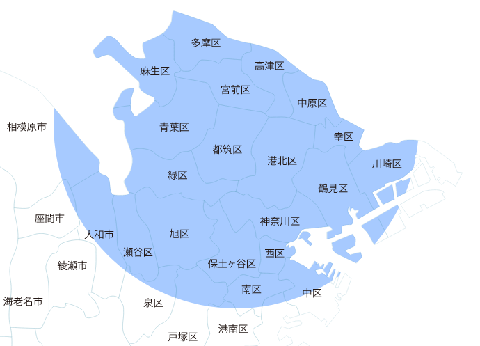 川崎市全区(川崎区、中原区、幸区、高津区、多摩区、麻生区、宮前区)